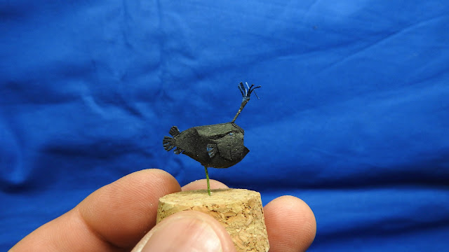 $ 0 0 また週末の天気予報が良くない。週末のたびに雨マーク・・・そういう時期ですけどね(^_^;)さて、作品は久しぶりに昆虫ではなくて魚類です。チョウチンアンコウを作ってみました。先日「ゴジラ」を見てから頭の中が怪獣になって、昆虫以外のものを作りたくなったのかも知れません。しかし、魚類をこのサイズにするのはけっこう大変でした。作品によっては大きさも考えないといけませんね。ちなみに私はキングギドラ派です(笑)